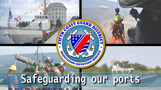 The Fifth Coast Guard District ensures the safety and security of the oceans, coastal areas, and marine transportation system within America’s Mid-Atlantic Region. We focus on risk reduction and prevention, but are prepared to respond with courage and speed to any maritime incident.
